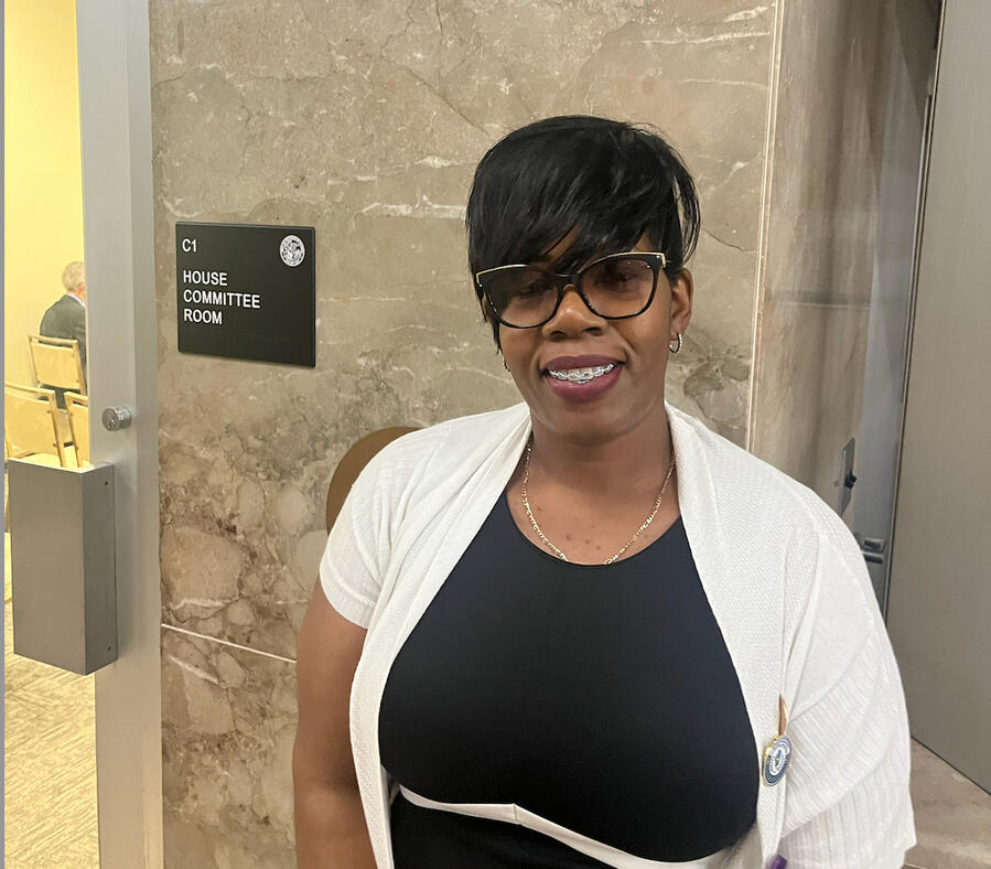 Representative Morris moments after passing the bill out of the House Insurance Committee on April 30, 2024 in Springfield, Illinois.